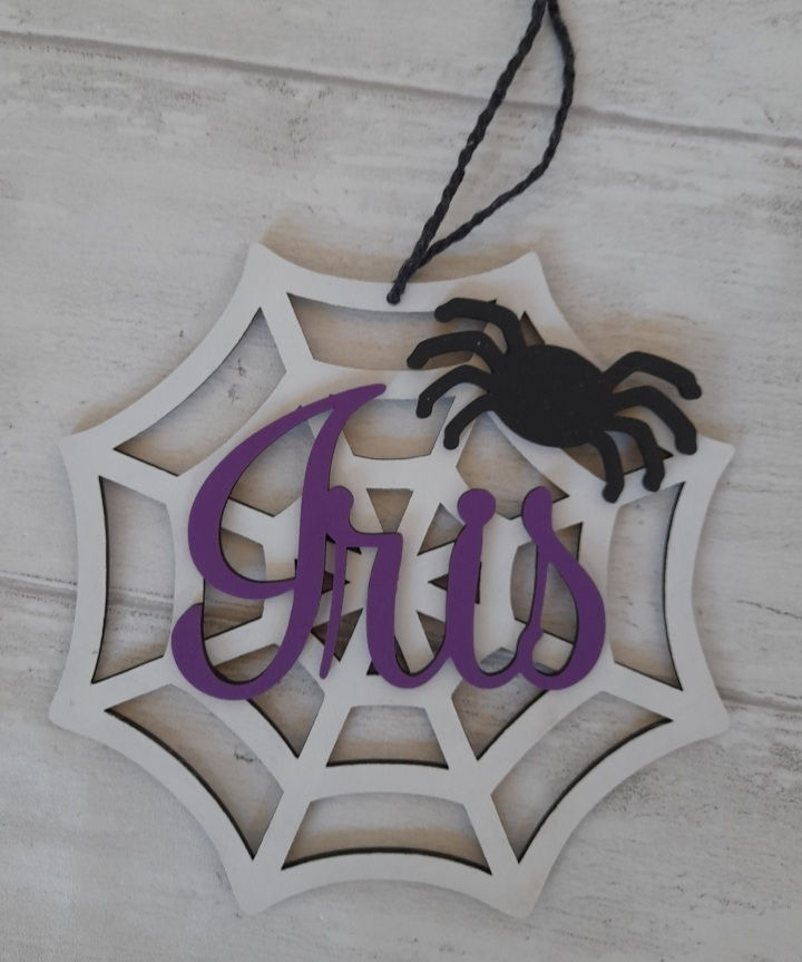 Wooden Personalised Spider Web With Spider Hanging Decoration